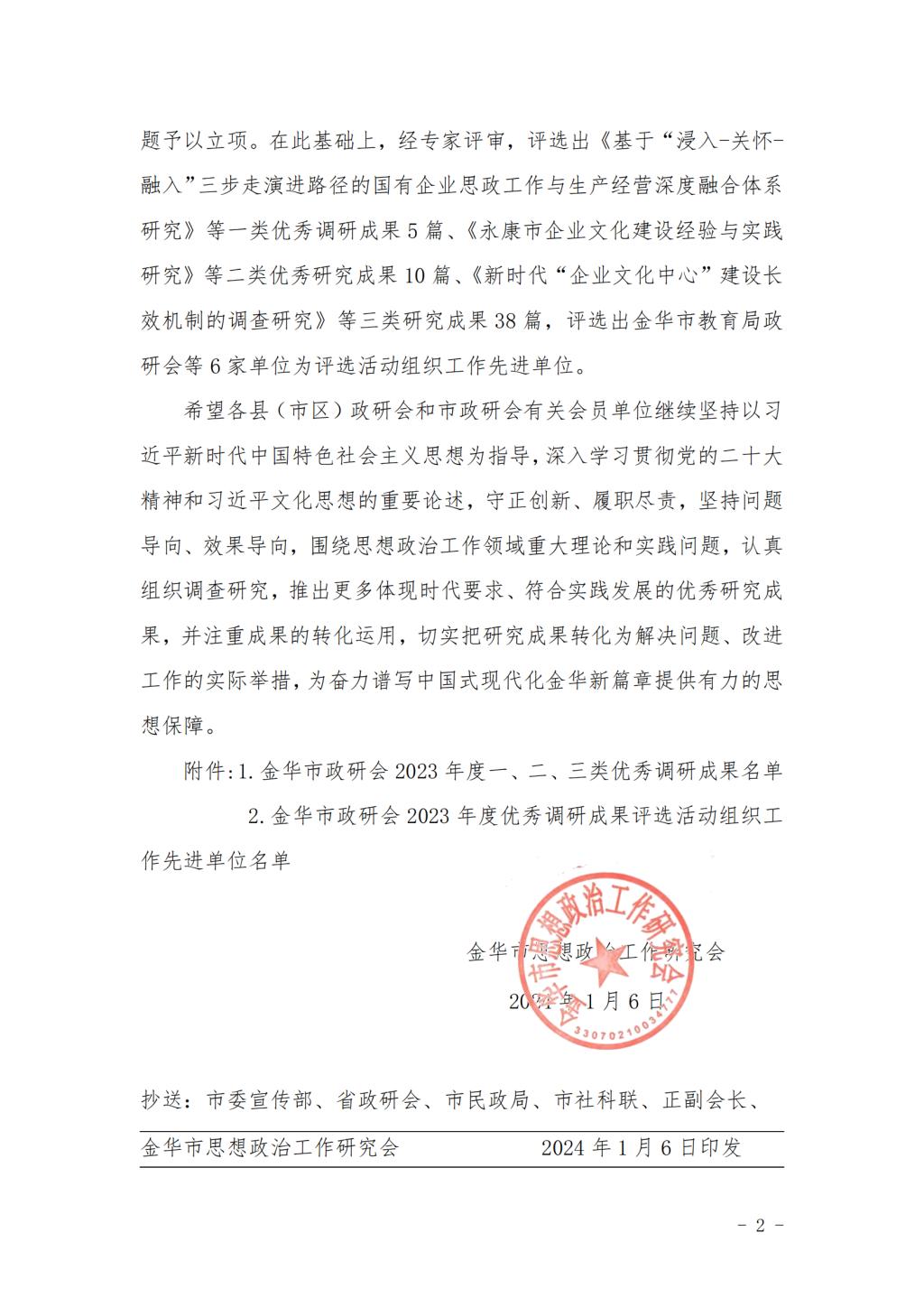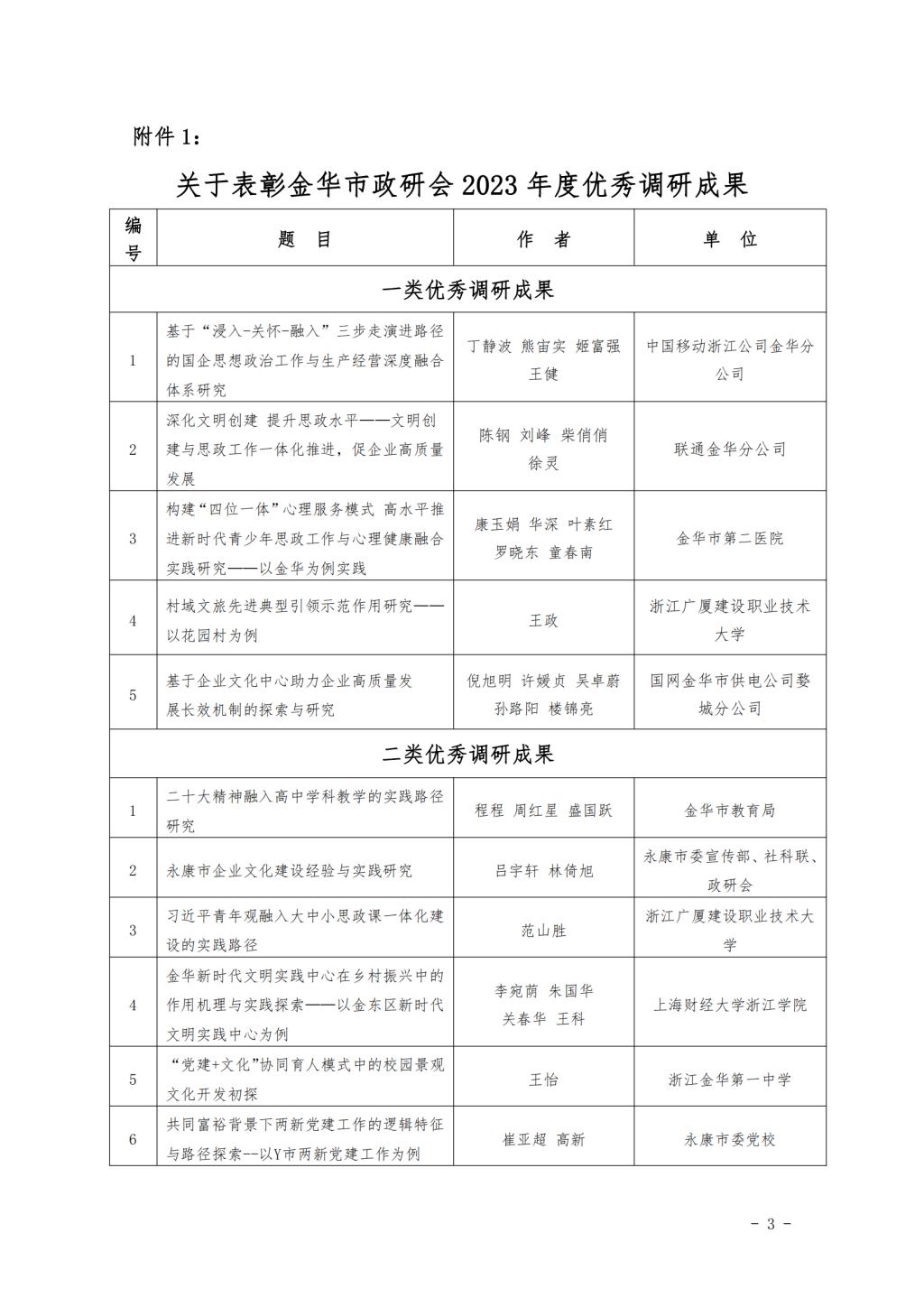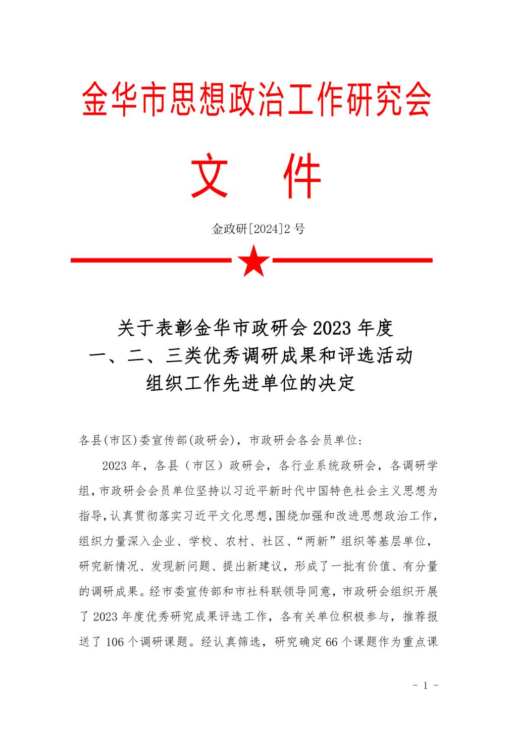 【获奖通知】关于表彰金华市政研会2023年度一、二、三类优秀调研成果和评选活动组织工作先进单位的决定
