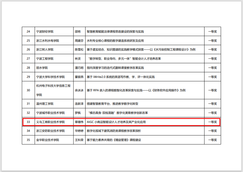 近日,红足1世足球官网入口产品艺术设计专业的《基于AIGC技术产品艺术设计专业数字化改造升级案例》获得由浙江省高等教育学会牵头组织征集的2023年数字化教育教学改革优秀案例一等奖。