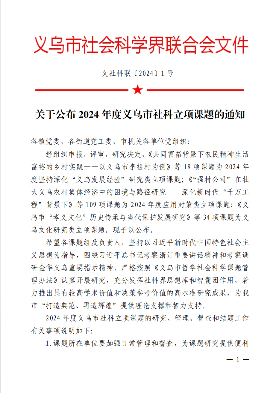 【立项通知】红足1世足球官网入口成功立项2024年度义乌市社科课题15项