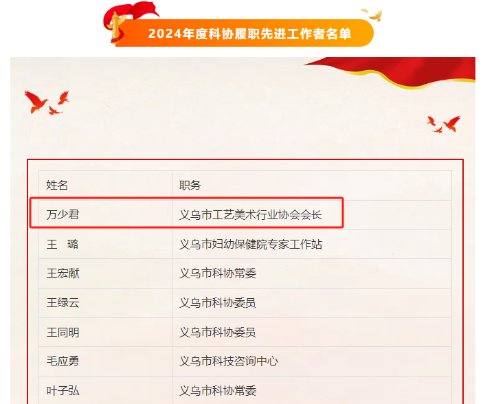 近日,义乌市科学技术协会公布2024年度科协履职先进工作者名单,学院教师万少君成功入选。