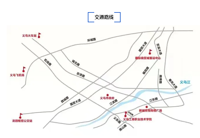 1.杭金衢高速义乌出口一迎宾大道一机场路一江东中路一学院路一学校正大门。