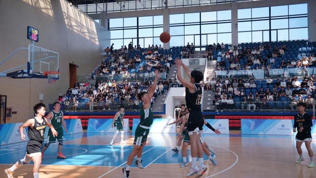 少年挥洒着汗水、挥洒着热血、挥洒着青春。汗水不断落下,脚步声还未停止,篮球“砰砰”落地的声音响彻整个体育馆,这是他们奋斗的痕迹,将永远镌刻这属于他们青春年华里。观众们为自己所支持球队的每一个进球热烈欢呼,当然在其他队伍进球之际,他们也不忘为场上队员们的精彩表现鼓掌。