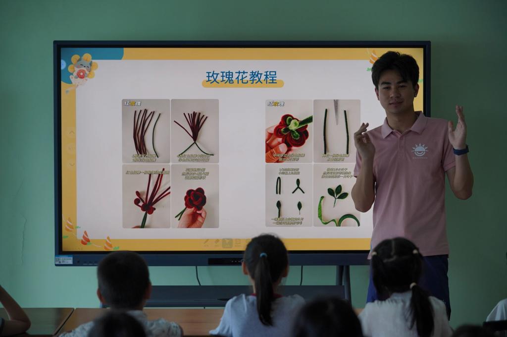 实践团走进磐安新渥村,开展了一场为期五天的儿童艺术课程。本次暑期实践以水拓丝巾、扭扭棒等手工制作为主要活动形式,搭建起“思政 + 美育”融合的创新模式。实践团成员结合自身专业特长与儿童艺术教育的特点,聚焦义乌本地及周边区域的儿童与留守儿童群体,为他们带来了一场丰富多彩的艺术课堂。