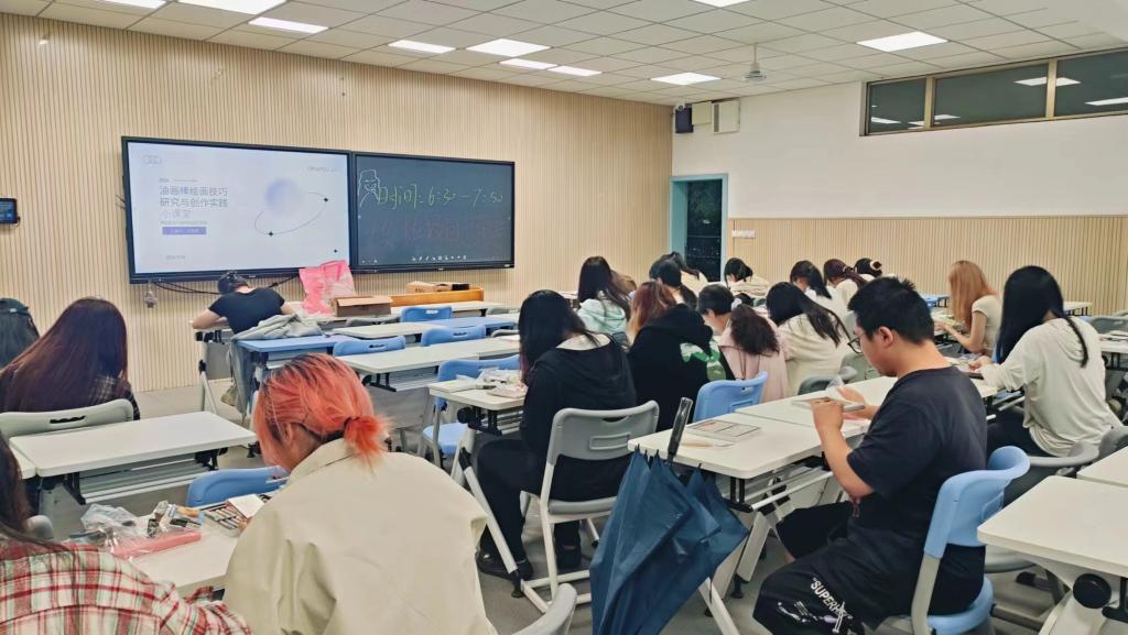 据悉,本次“色彩魔法”油画棒绘画教学小课堂由学校第八期学生资助对象发展性资助项目“油画棒绘画技巧研究和创作实践”的负责人王思渊同学担任主讲,通过现场示范和互动教学的方式,向学员们传授油画棒绘画的技巧和心得。
