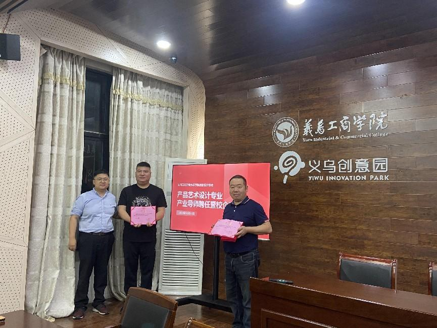 在聘任仪式上,学院书记、产品艺术设计专业主任及义乌市工艺美术行业协会会长向义乌市福韵科技有限公司总经理章思钢、义乌歌哥玛利文化传播有限公司总经理白富康颁发了产业导师、双创导师及外聘教师证书。两位导师在工艺品领域不仅拥有丰富的实战经验,而且对行业发展趋势具有深刻的洞察力。他们将通过定期的讲座、研讨会及个别指导,向学生传授最前沿的设计理念与实用技能,助力学生为未来职业生涯做好准备;同时,这两家企业也慷慨捐助了总计六万元的奖教助学金,以企业研发项目的形式,为本学期产品艺术设计专业的课程教学提供了实践课题。