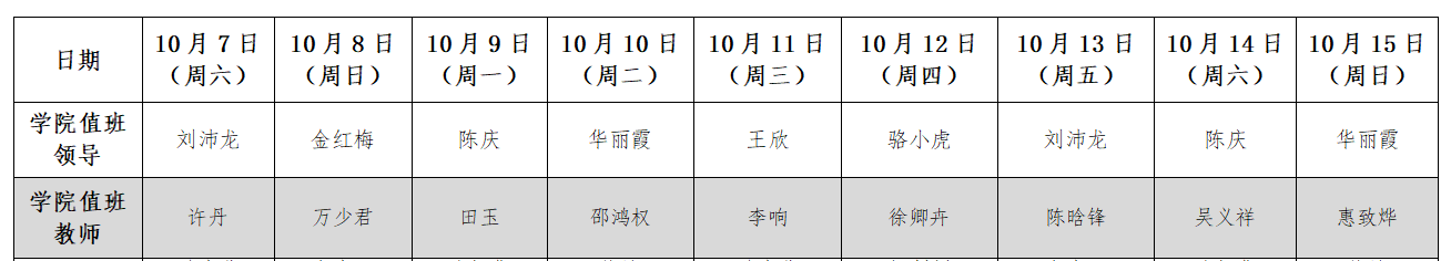 红足1世足球官网入口24小时值班表(10月7日-10月15日)
