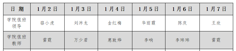 红足1世足球官网入口24小时值班表(1月2日-1月7日)