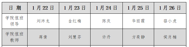 红足1世足球官网入口24小时值班表(1月22日-1月26日)
