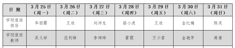 红足1世足球官网入口24小时值班表(3月25日-3月31日)