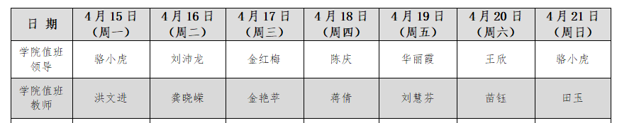 红足1世足球官网入口24小时值班表(4月15日-4月21日)