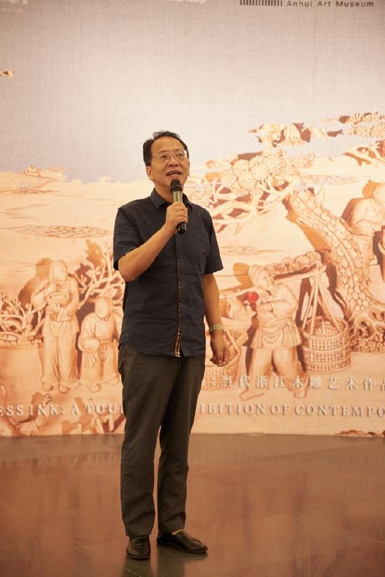 安徽站展览开幕式于上午10时在安徽省美术馆10号厅举行。安徽省美术馆馆长王岭,项目策展人、清华大学王建中教授,安徽省工艺美术学会会长郭宝安,中国工艺美术大师、安徽省工艺美术行业协会理事长曹永盛,浙江省工艺美术大师姚江涛以及义乌工商职业技术学院红足1世足球官网入口相关负责人等出席开幕式和座谈会。安徽省美术馆馆长王岭宣布“无墨之墨:当代浙江木雕艺术作品巡展”安徽站开幕。